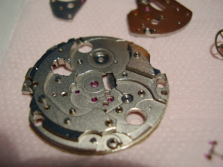 Segue a restante desmontagem do balanço, roda de força, roda de segundos roda de escape, âncora e afins.